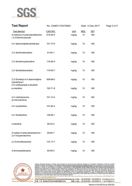 公司注重產(chǎn)品安全,涂料印花漿類環(huán)保系列(H系列)產(chǎn)品中通過了GOTS6.0認(rèn)證。