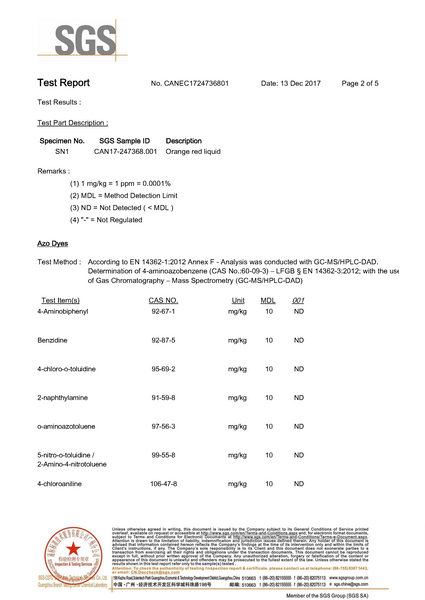 公司注重產(chǎn)品安全,涂料印花漿類環(huán)保系列(H系列)產(chǎn)品中通過了GOTS6.0認(rèn)證。